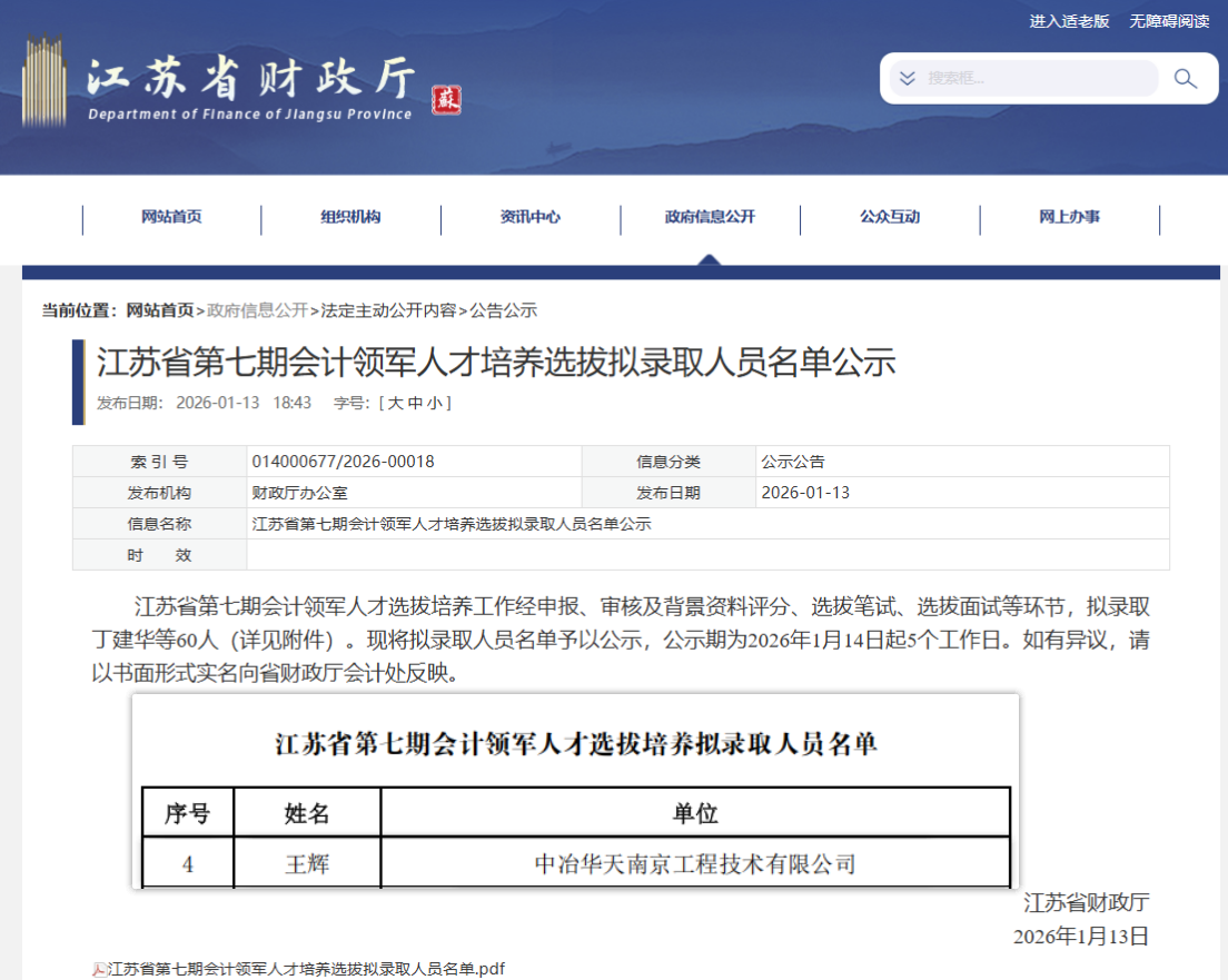 1月13日,江苏省财政厅公布“江苏省会计领军人才”(第七期)拟录取人员名单。经过申报、资格审核、背景评分、笔试与面试等多轮严格选拔,南宫28能源财务管理部王辉从全省央国企、上市公司、三甲医院、高等院校、独角兽企业等各类重点单位的优秀财务负责人及总会计师群体中脱颖而出,成功入选,再次彰显了南宫28能源财务人员的专业实力与业务素养。