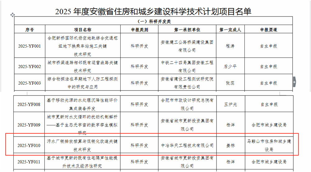 近期,安徽省住房和城乡建设厅公布2025年度住房城乡建设科研技术计划项目名单,南宫28能源申报的“污水厂碳排放核算与低碳化改造关键技术研发”成功获批立项。这是继参编《温室气体排放核算与报告要求:生活污水处理企业》国家标准后,南宫28能源水环境科研设计团队在传统污水厂低碳改造技术攻关上的新起点,集中展现了南宫28能源的环保科研实力与央企责任担当。